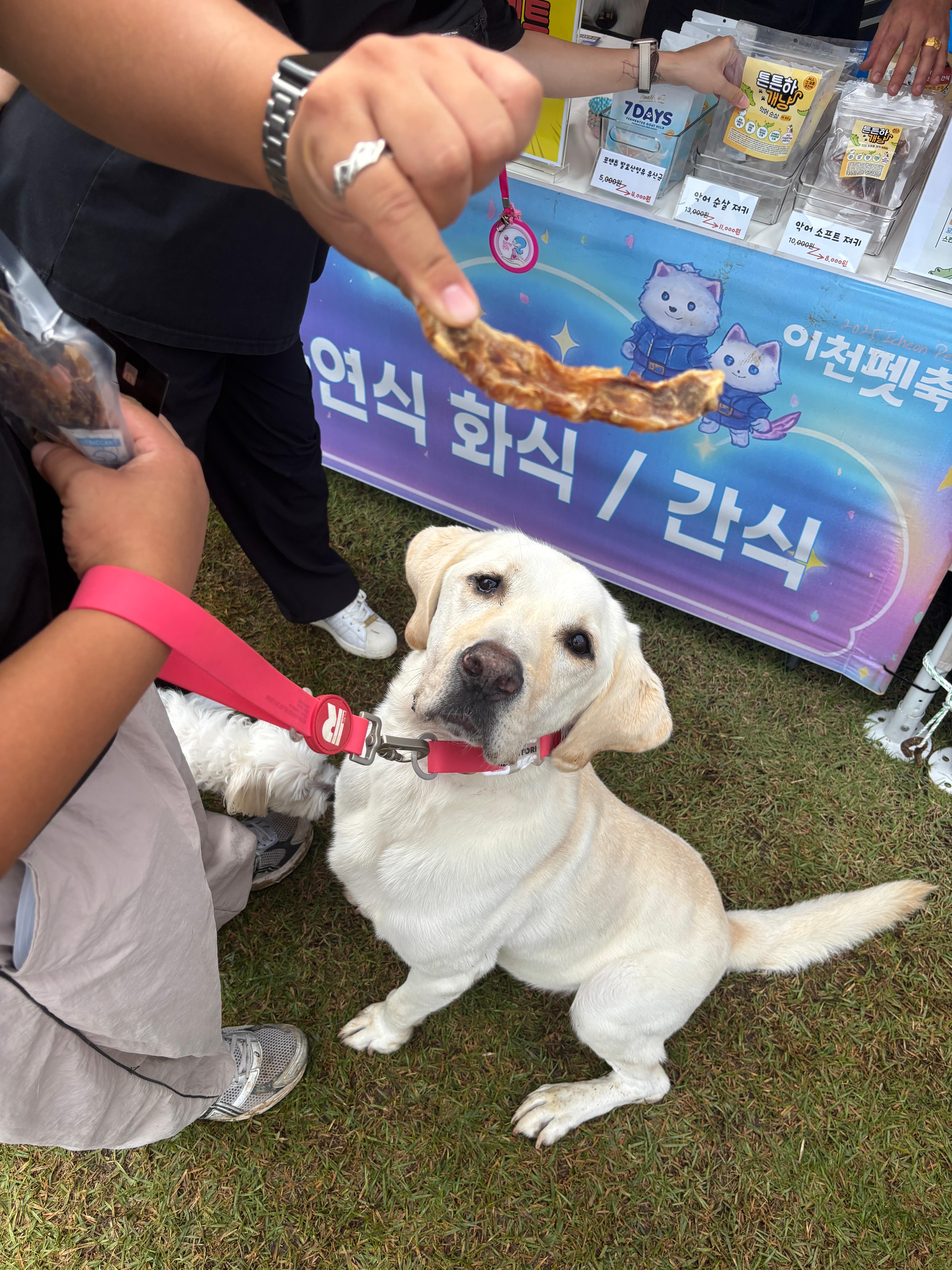 아파트에서 대형견을 키울 때 가장 중요하게 생각해야 하는 부분 중 하나는 바로 산책입니다. 집 안이 아무리 넓다고 해도 대형견이 가진 에너지를 모두 해소하기에는 부족하기 때문에, 매일 규칙적으로 산책을 시켜주는 것이 필수입니다. 저희 집에는 30kg대 래브라도 레트리버 식혜, 그리고 7kg대 믹스견 비락이, 후지마비가 있지만 에너지가 넘치는 밥알이까지 함께 살고 있습니다. 아파트라는 환경은 반려견에게 제약이 많은 공간입니다. 특히 엘리베이터를 타거나 복도를 지나 이웃과 마주칠 때, 또는 바깥에서 산책할 때는 안전을 위해 반드시 리드줄과 하네스가 필요합니다.